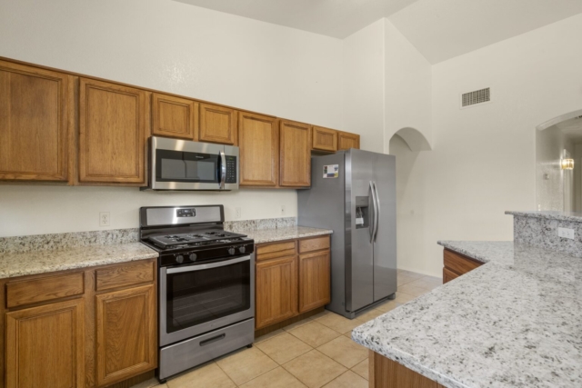 Gorgeous home in beautiful neighborhood! The private entrance leads the way into this open concept floor plan home. Check out those stunning oversized french doors! Relaxing living room complete with a cozy fireplace, charming ceiling fan and many windows that allow natural light to flow effortlessly! Wonderful kitchen layout, perfectly complemented by a large kitchen island with multiple outlets, elegant granite countertops and stainless steel appliances! Very spacious master bedroom. Enjoy a relaxing time on your jetted tub in your wonderful master bathroom. Low-maintenance front and backyard and covered patio. Move-in ready to make this home your own and create amazing memories, see this home today! Call us at (520)456-4554 Ext 4.