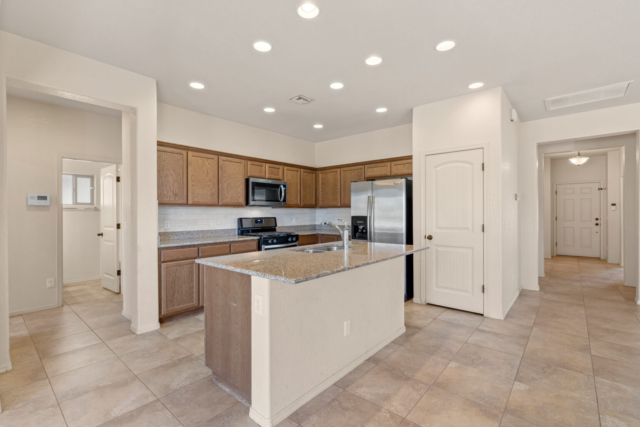 Beautiful open concept floor plan Holiday home! Large family room right next to the entrance – Plenty of space for games, office space or whatever fits your needs! The kitchen has gorgeous granite countertops, perfectly complemented by a large kitchen island and walk-in pantry. 5 bedrooms, one of which is downstairs next to a full bathroom. Every room in this 2,777 sqft home is very good size! Your perfect relaxation zone is right in your master bedroom, stunning bathroom, walk-in closet and check out the views from your balcony! Very low maintenance backyard. Let’s not forget about the amazing community amenities! 3 pools, spa, clubhouse, kids play area, volleyball court and more! Schedule a showing today!